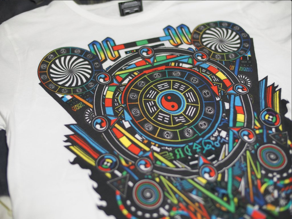 "The hypnotist reconstructing and projecting the different interpretation of reality. Revealing the true system of the cosmos, layered reality, and orchestration behind it. Mandala in motion. One action leads to another and everything connects. Every action has its purpose and function in itself as well as part of whole. Two worlds interacting and intertwined. Two sides working in unison. Duality of reality. Worlds in circular motions."