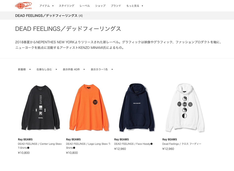 DEAD FEELINGS シーズン1 2018春夏がネペンテスニューヨーク 307 West 38th Street にて販売開始。