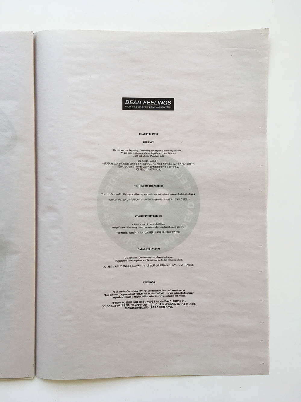 DEAD FEELINGS Season 1 (Spring Summer 2018) is now available at Nepenthes New York at 307 West 38th Street NYC.