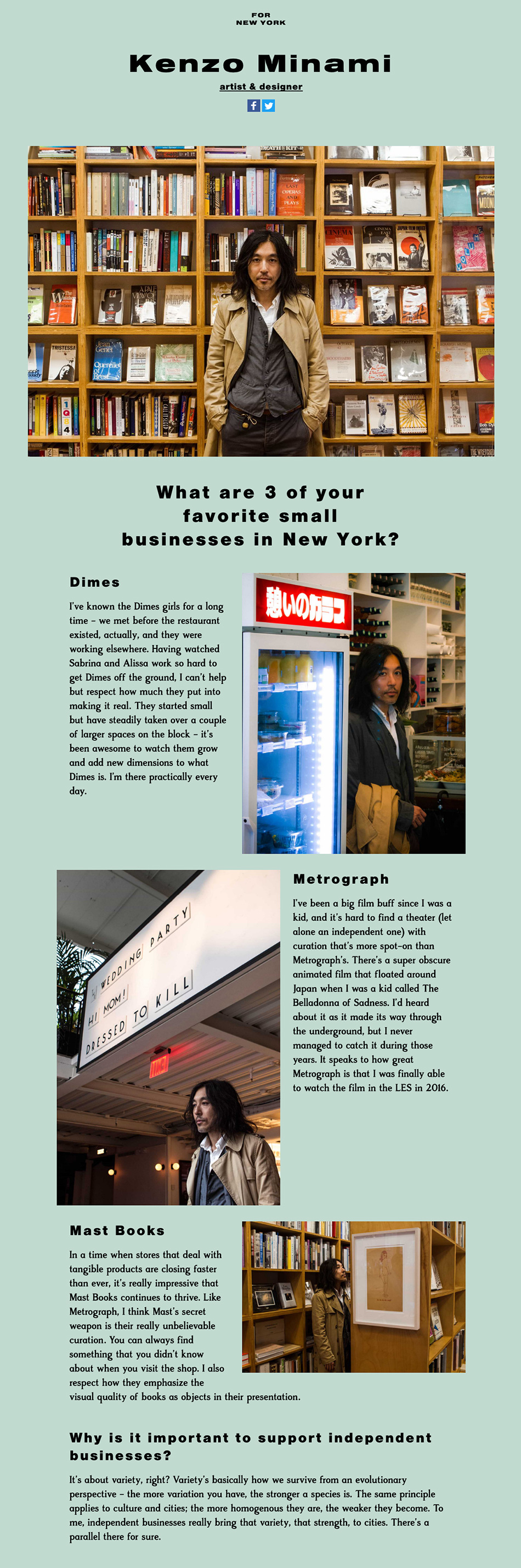 インディペンデントビジネスに関する新しいZINEにて、私のニューヨークでのフェイバリットを3つ紹介させてもらっています。