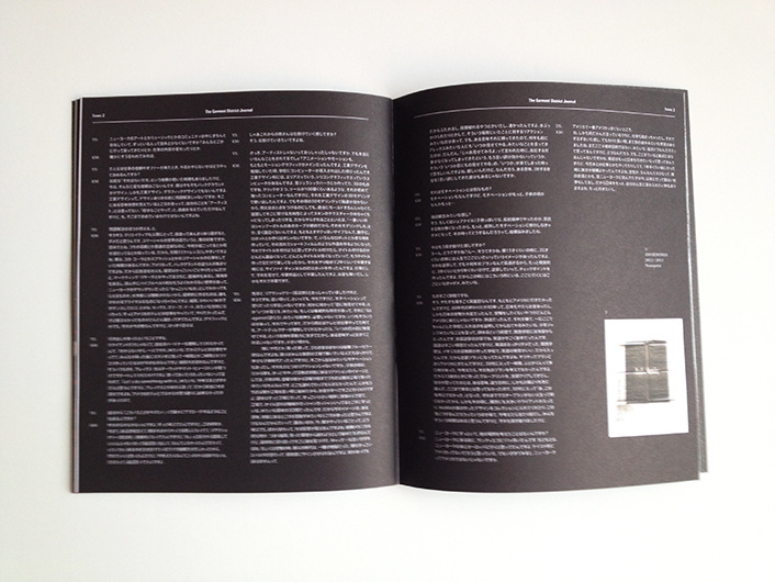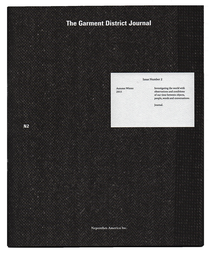 新しいインタビューがネペンテスニューヨークによる季刊誌『The Garment District Journal』No.2に掲載されています。佐久間裕美子さんと鈴木大器さんにインタビューを受けると言う光栄な機会だったのですが、(自分で言うのもなんですが)面白い組み合わせの3人での会話で、ネペンテスニューヨークのオフィスでのとても楽しいひと時でした。今回は珍しく日本語でのインタビューだったので、これも普段とは違う感じで楽しかったです。