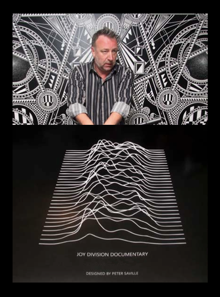 私が壁とTシャツをデザインした、2008年のマイクロソフトのプロジェクトの一部はピーター・サヴィル氏デザインによるジョイ・ディヴィジョンのドキュメンタリーであり、これは(ジョイ・ディヴィジョン、ニュー・オーダーの一員である)ピーター・フック氏が私のデザインの前でインタビューを受けているシーンです。私のデザインとピーター・サヴィル氏のクラッシックデザインが並び、私たちの名前が同じ所に並んでいるのはとても光栄です。